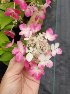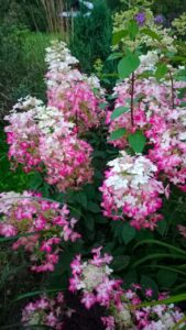 Распускается белым, постепенно розовеет. Осенью ярко розовый.
