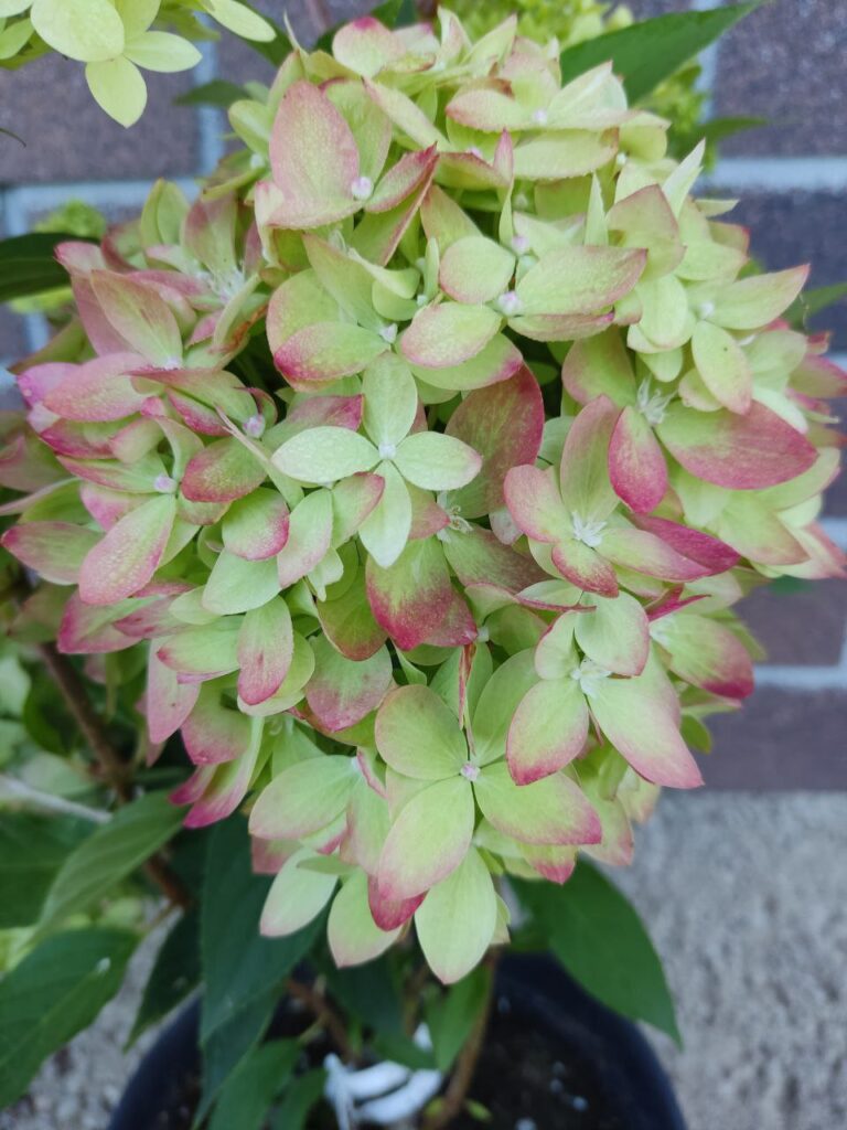 Соцветие плотное, округлое, почти шарообразное из зелёного постепенно розовеет.