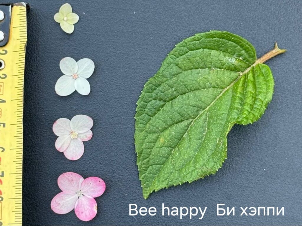 Лист — средний, широкий, заострённый, мелкозубчатый, мясистый, с выраженным жилкованием.