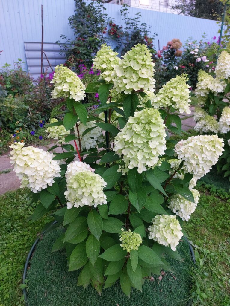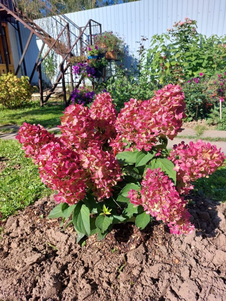 Плотные крупные тупоконечные соцветия  — к осени окрашиваются в красный полностью.