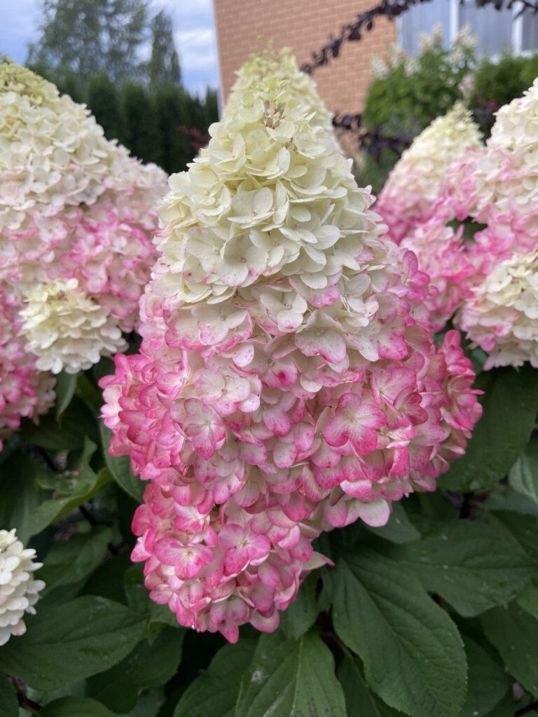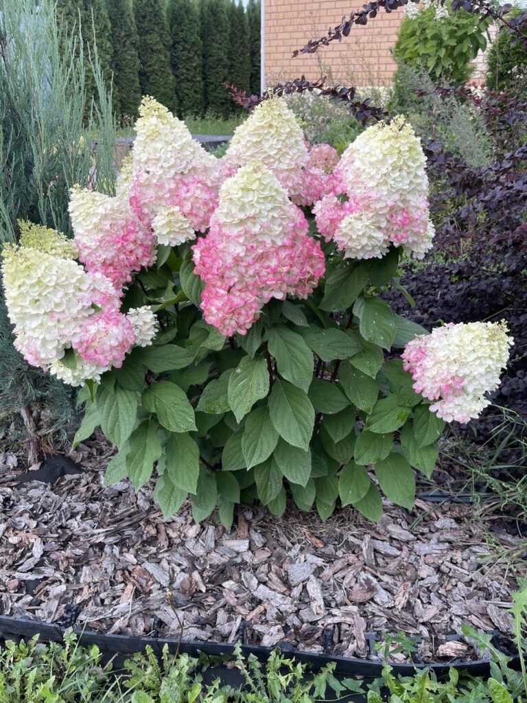 Соцветия плотные, конической формы, 15-20 см. Состоят из стерильных цветов.