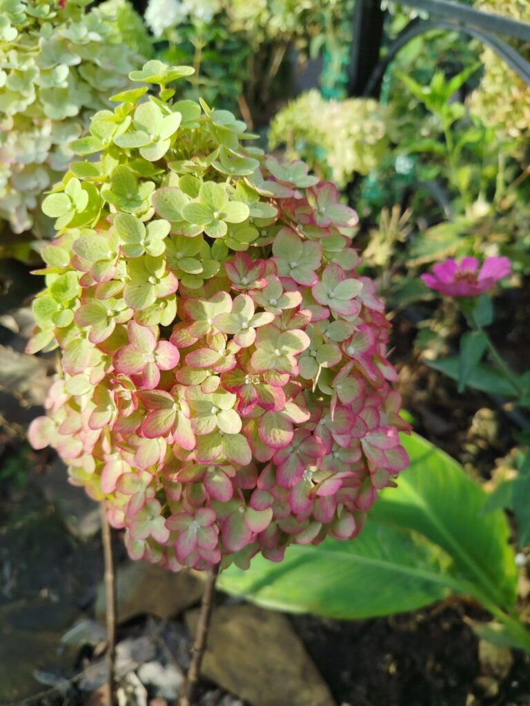 Цвет: в начале цветения зеленовато-кремовый, постепенно розовеет. Макушка остаётся светлой. Затем ярко малиновая.