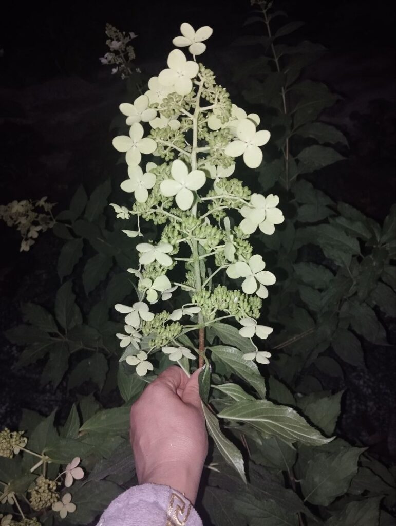 Соцветия конусовидные, 15-30 см, рыхлые из множества стерильных и фертильных цветов.