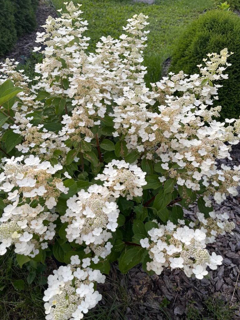 Соцветия рыхлые из стерильных и немного фертильных цветов конусовидные 15-20 см.