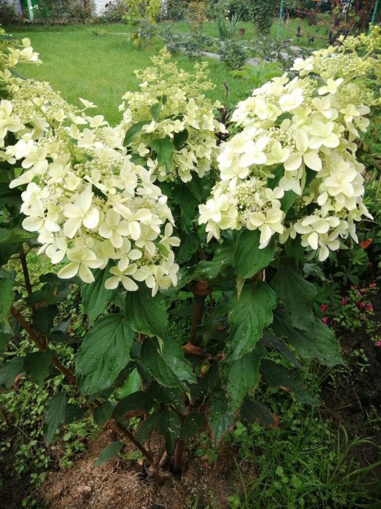 Соцветия рыхлые их стерильных и фертильных цветов конусовидные 20-30 см.