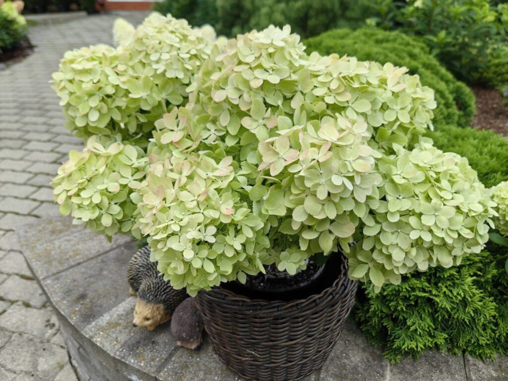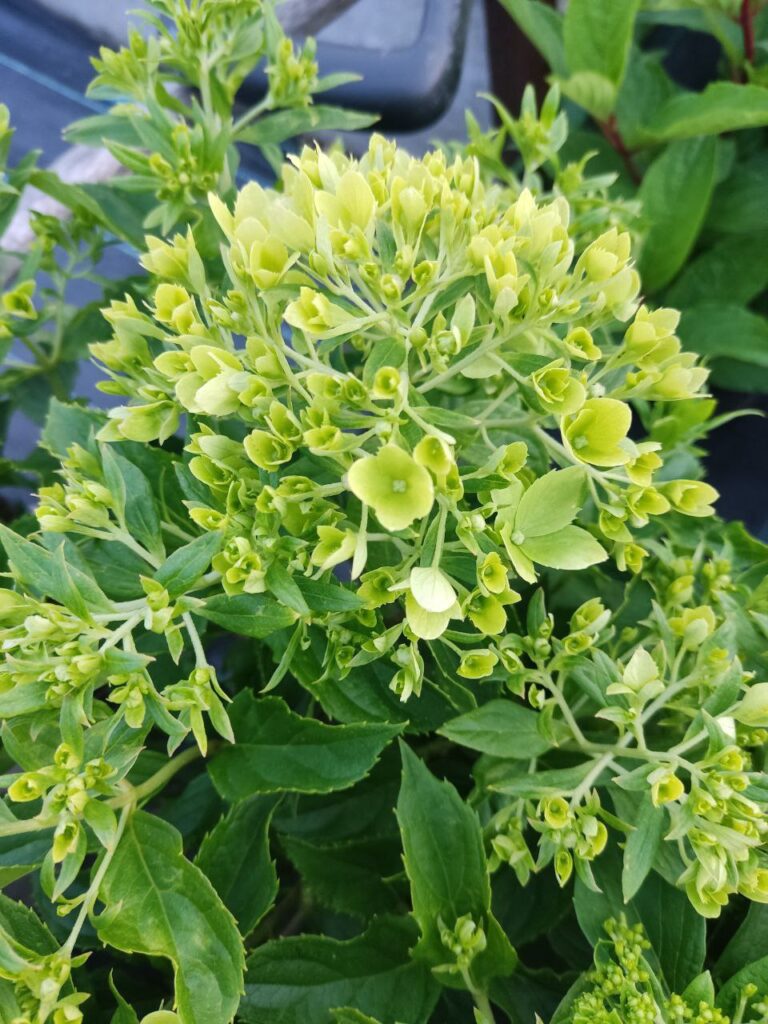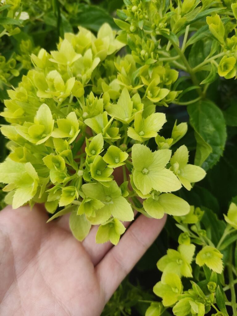 Соцветия плотные, округло-пирамидальные, состоят из стерильных цветов.
