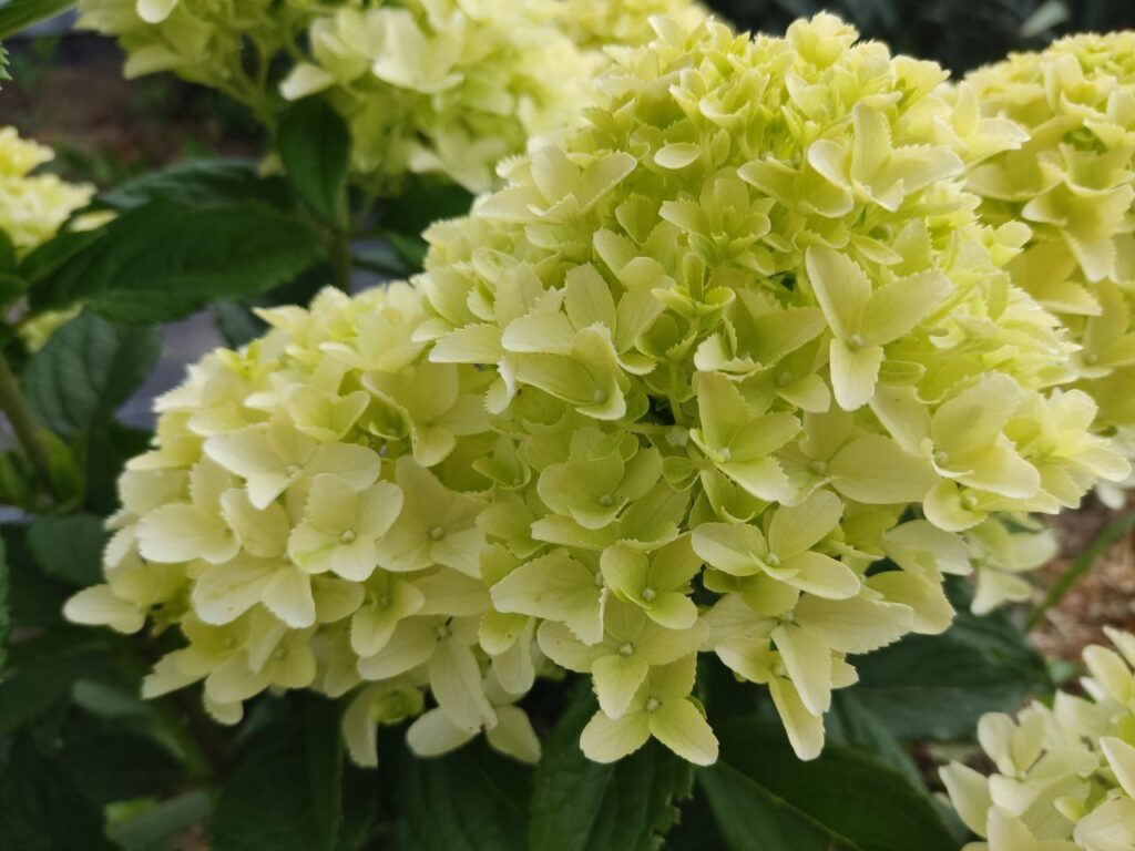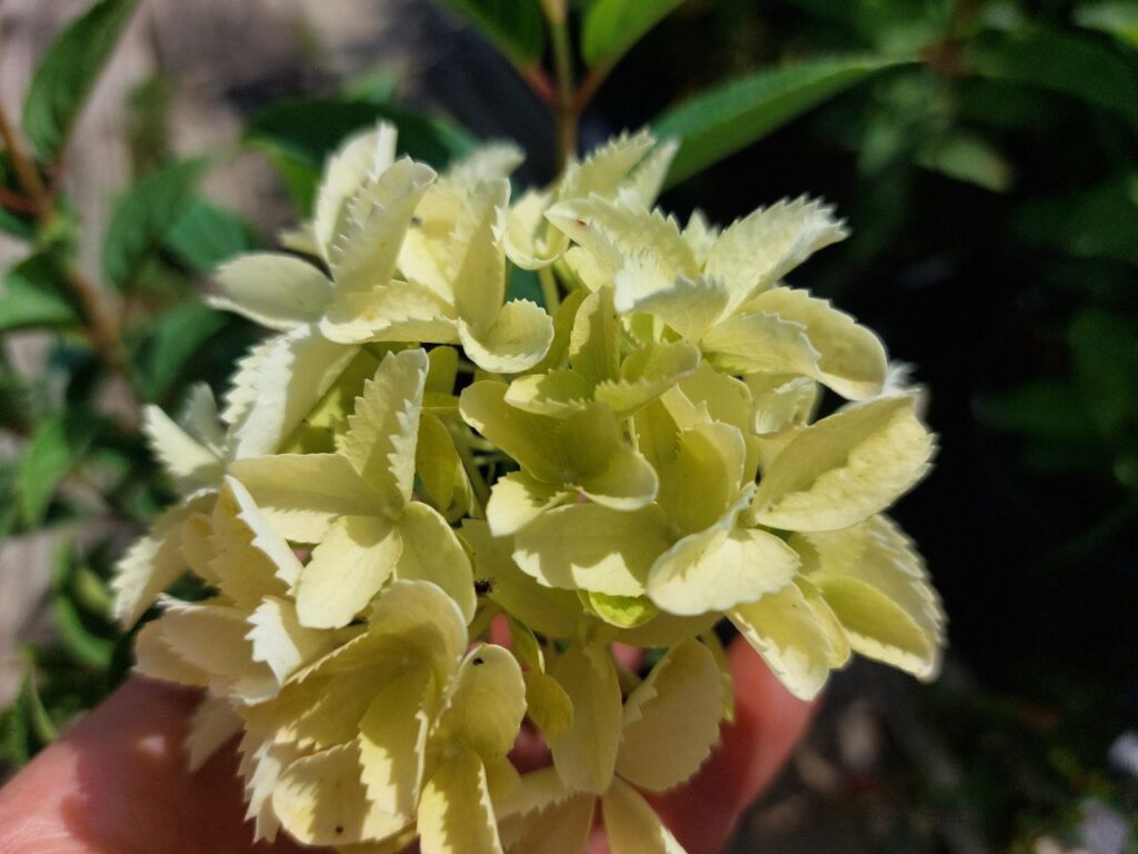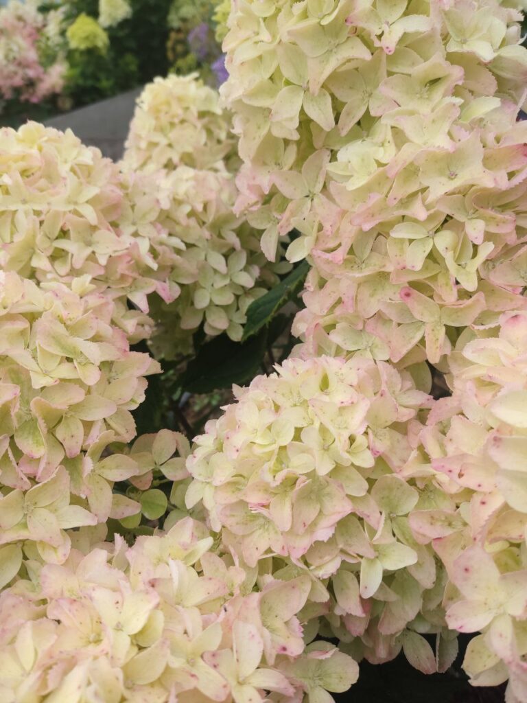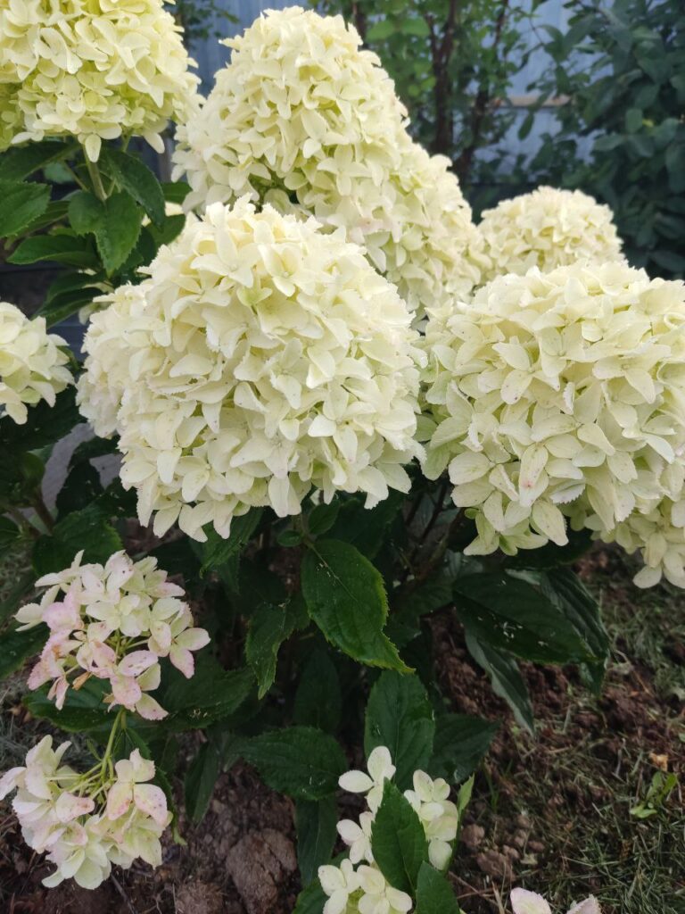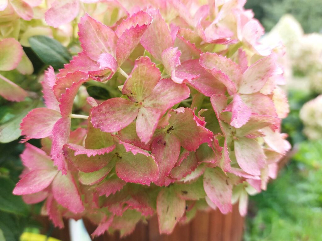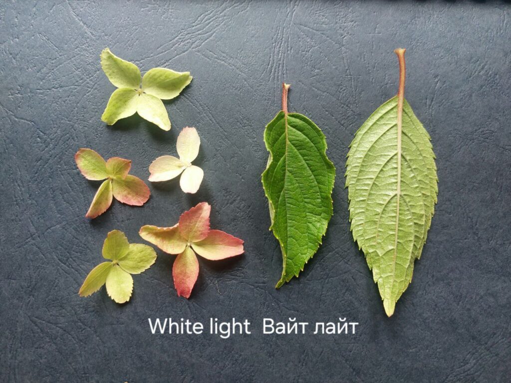 Изменение цвета — от зелёного через белый в оттенки розового соцветие целиком.
