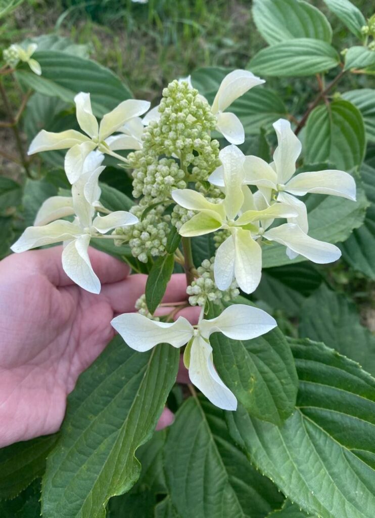 Лист — большой, заострённый, мелкозубчатый, волнистый.