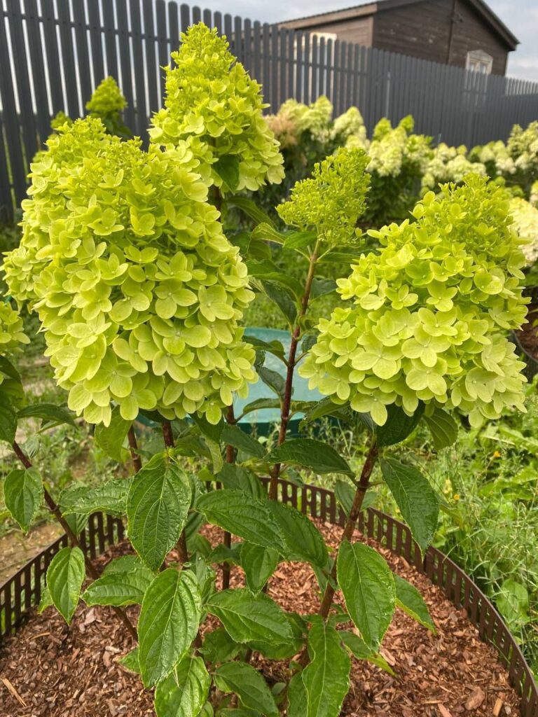 Соцветия  25-30 см, плотные, пирамидальные, состоят из стерильных цветов.