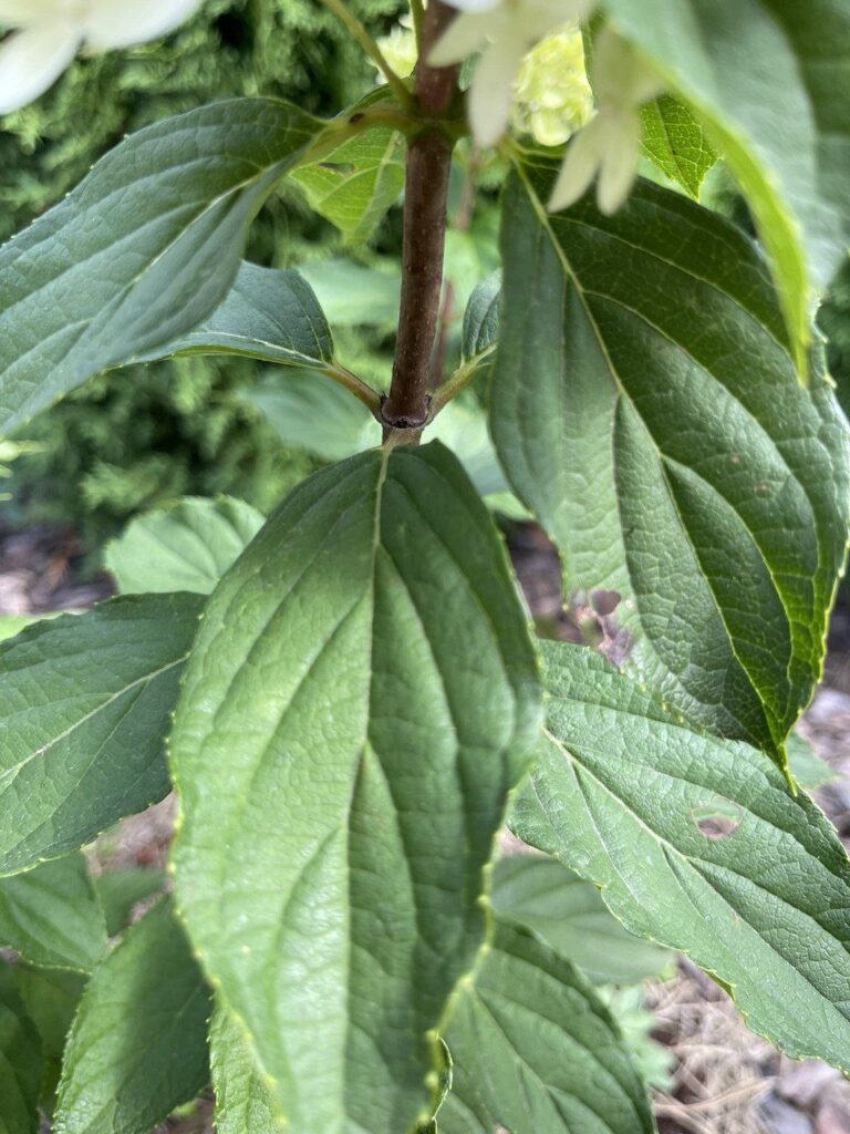 Лист — средний,  заострённый, мелкозубчатый.