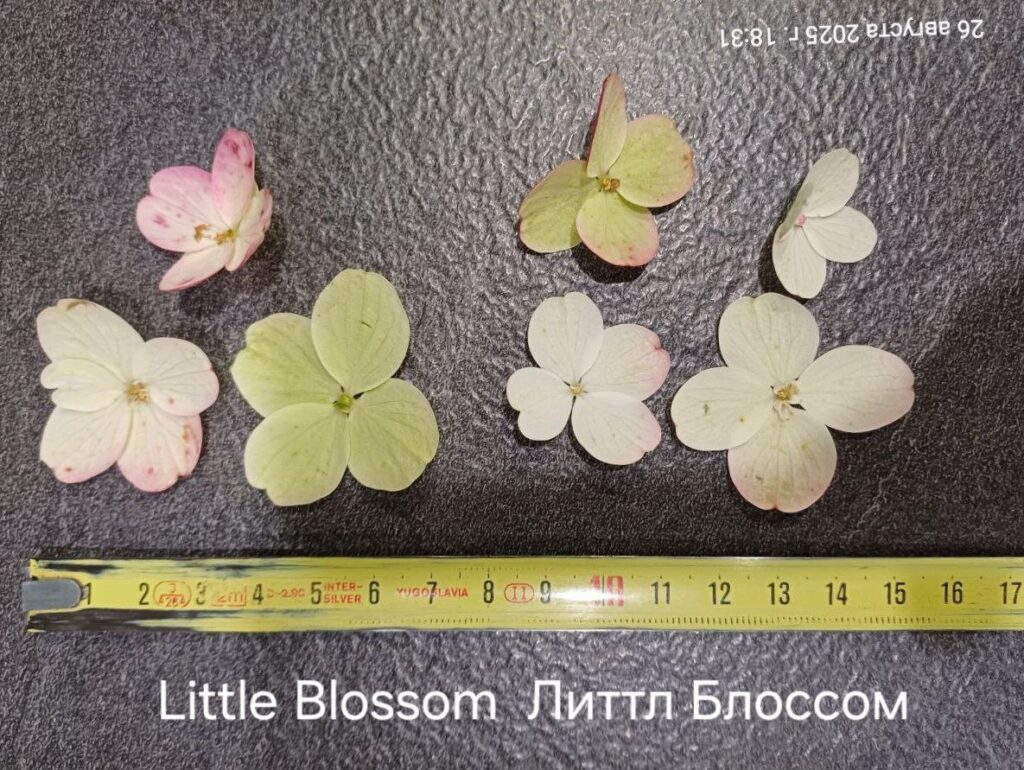 Лепестки — кругло-овальные, с выемкой, перекрывают друг друга.