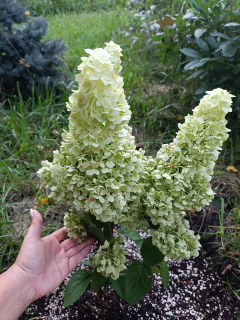 Соцветия  30-40 см, плотные, конусовидные, вытянутые, состоят из стерильных цветов.