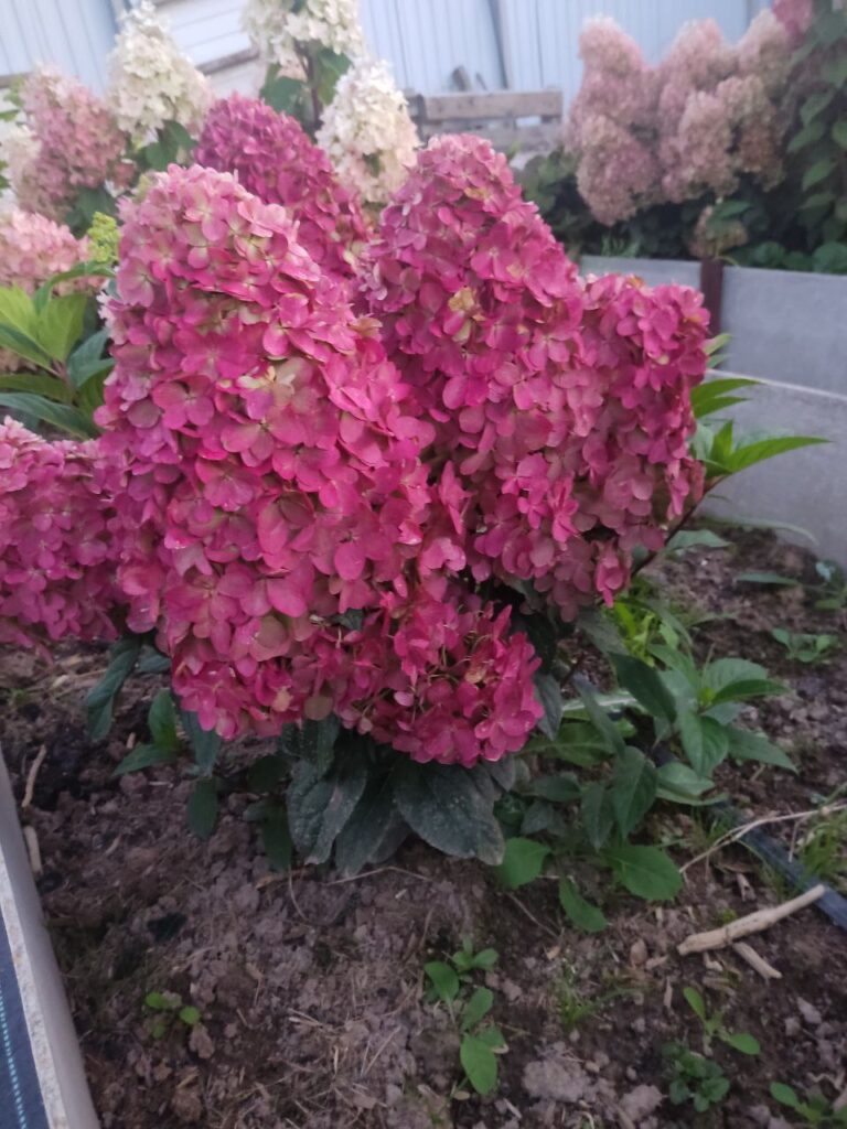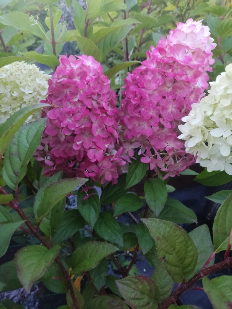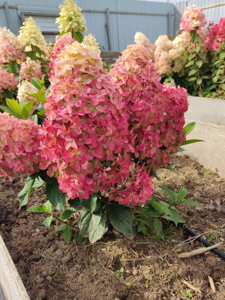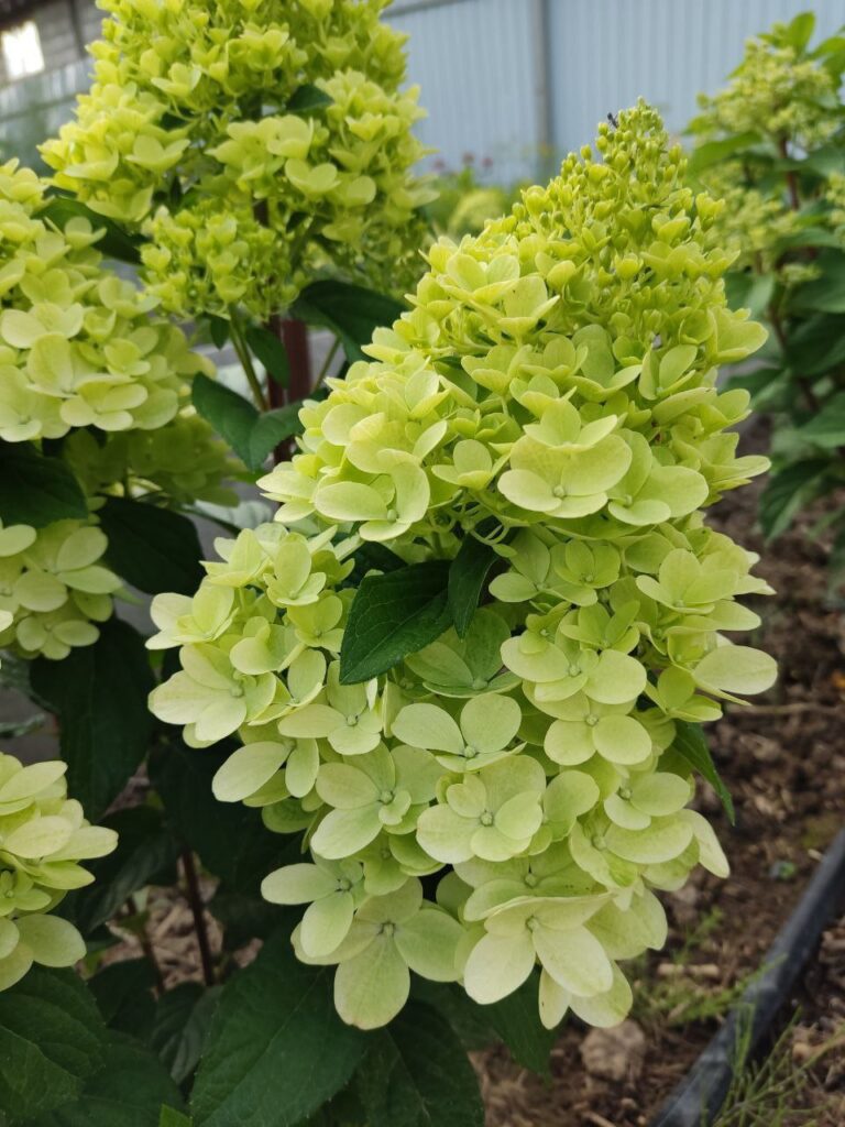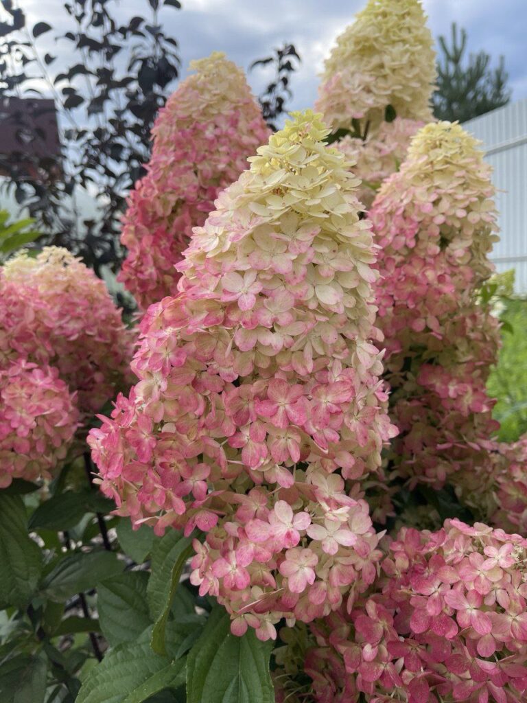 Соцветия тупоконечные, вытянутые, большие (40 см), состоят из стерильных цветов.
