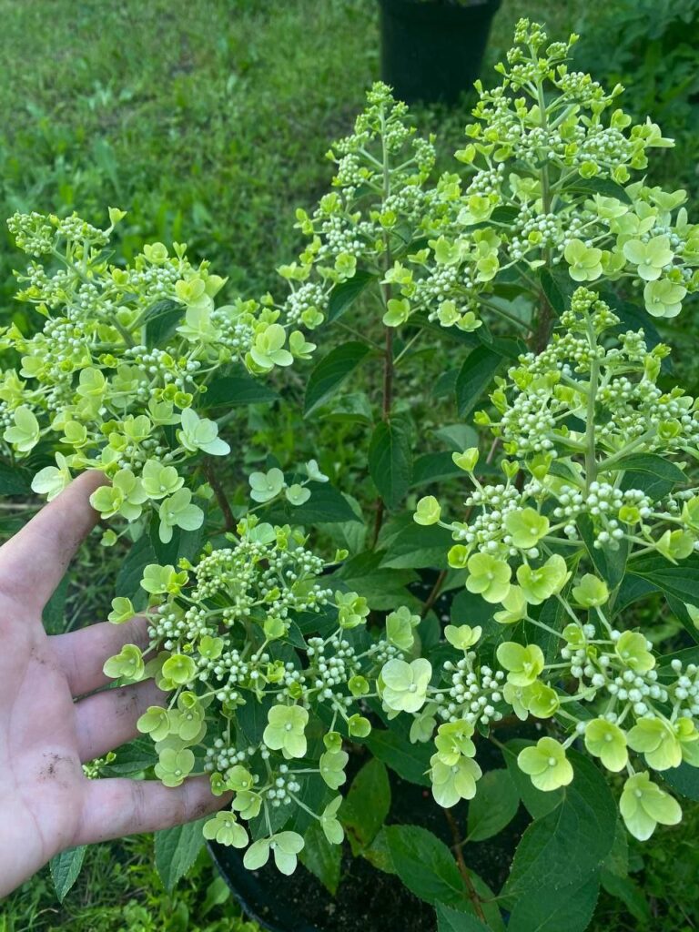 Соцветия 12-15 см, пирамидальные, рыхлые из стерильных и фертильных цветов.