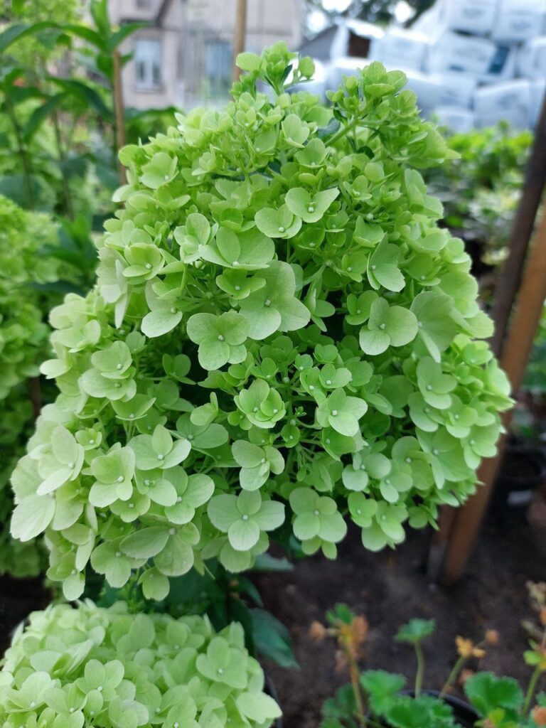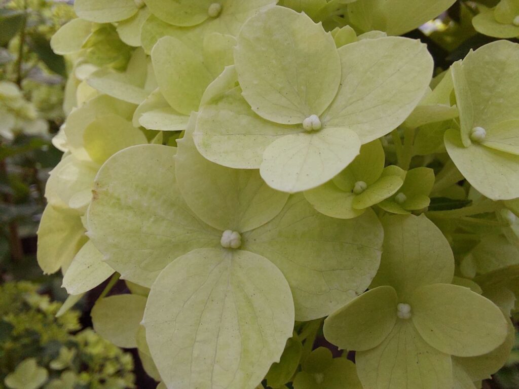 Соцветия плотные, большие из стерильных цветов, форма округлоконическая.