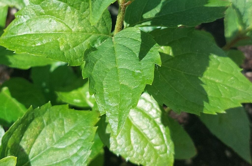 Лист — маленький, плоский, вытянутый, заострённый, зубчатый, шершавый. Весной напоминает крапивный лист.