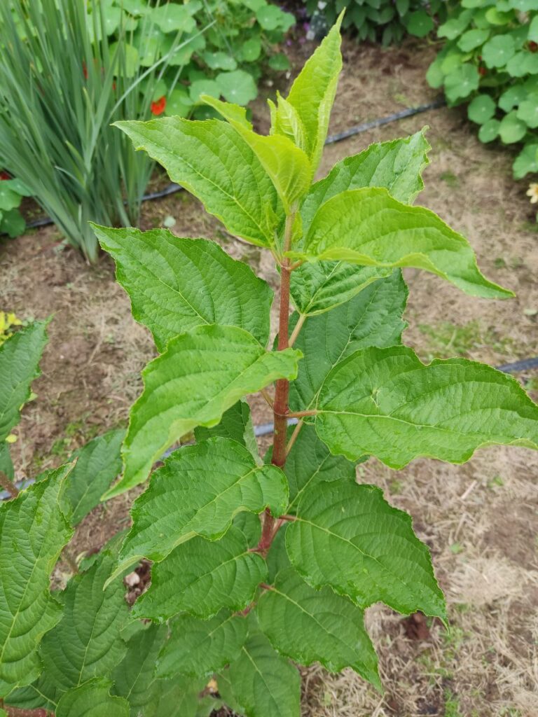 Стволики выше одревеснения — красноватые и далее зелёные в соцветии.