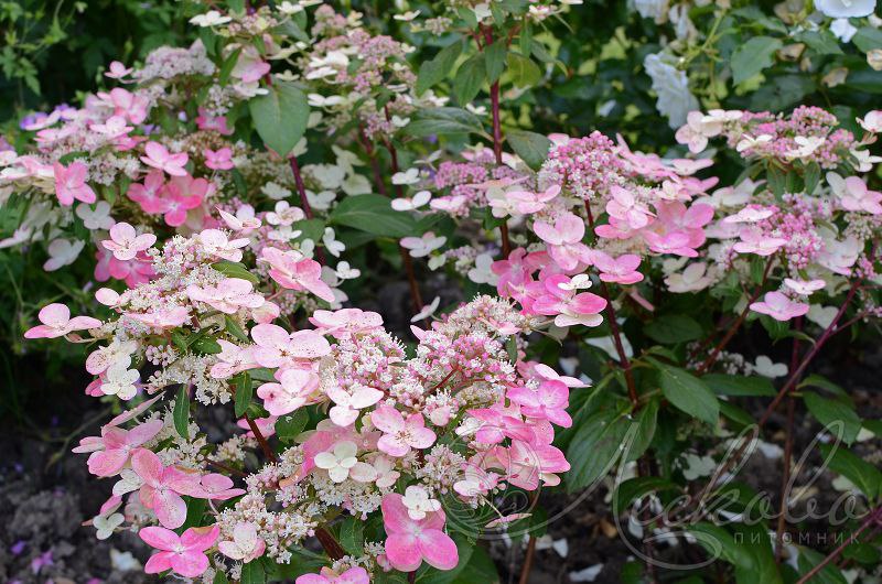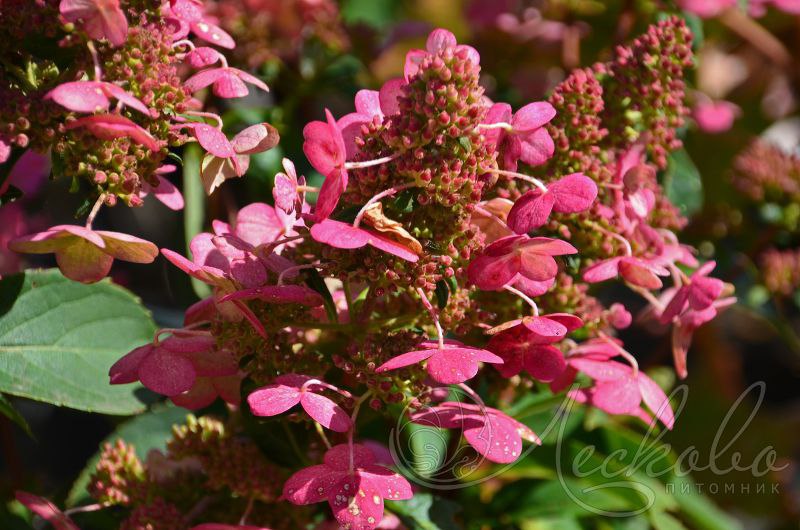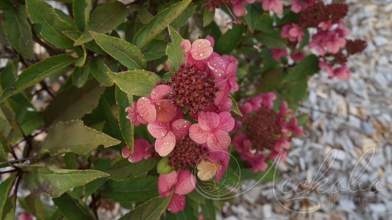Соцветия 10-15 см, пирамидальные, рыхлые из стерильных и фертильных цветов.