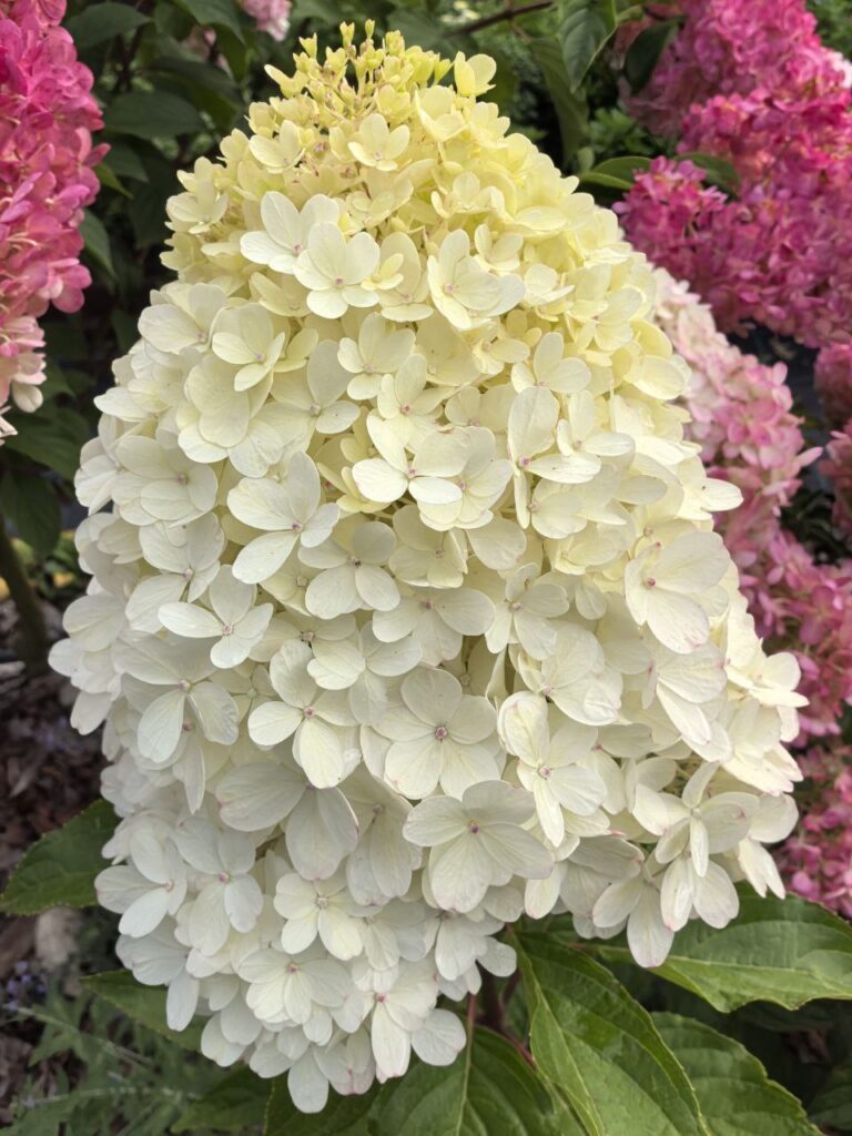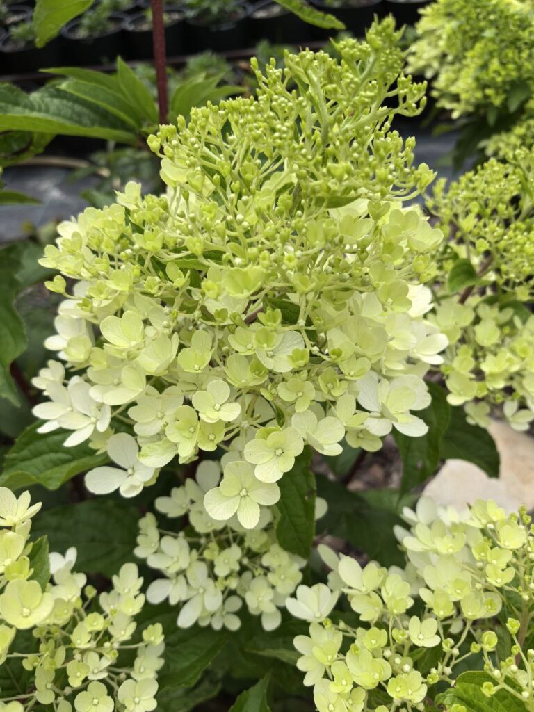 Соцветия 20-25 см, плотные, пирамидальные, состоят из стерильных цветов.