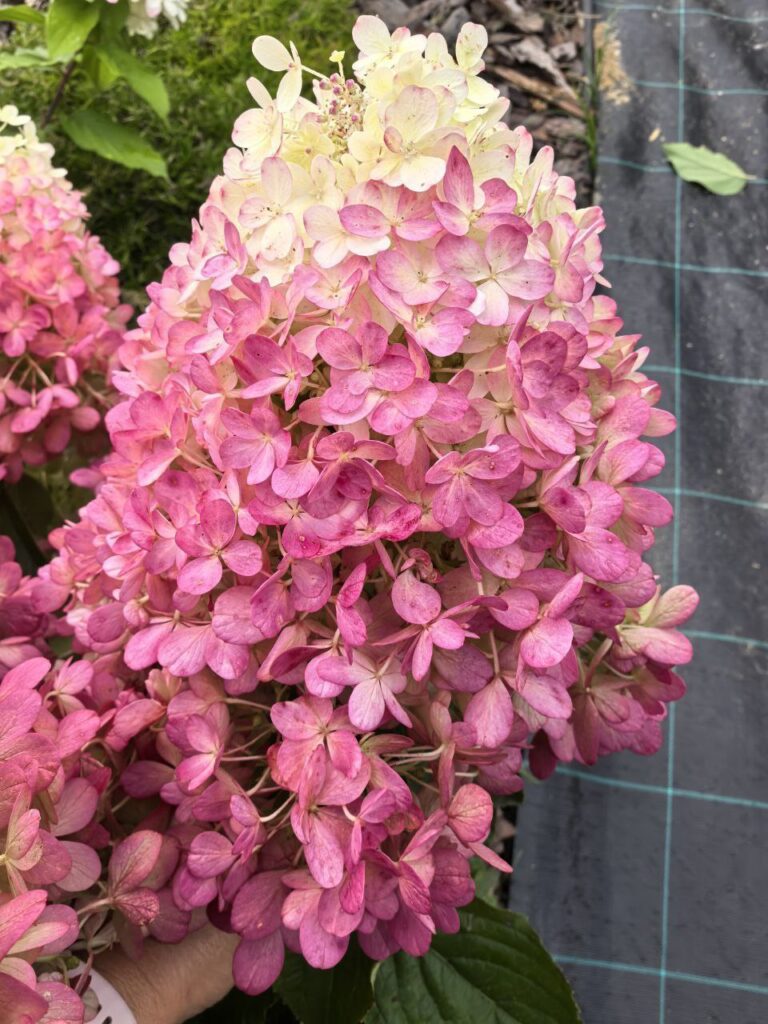 Цвет: распускается белым, к осени насыщенно розовый.