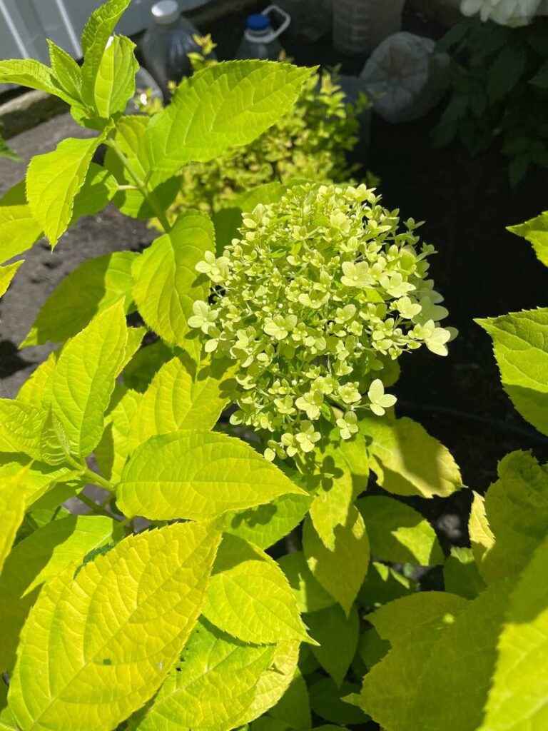 Лист — средний,  заострённый, зубчатый, флуоресцентно-желтого цвета