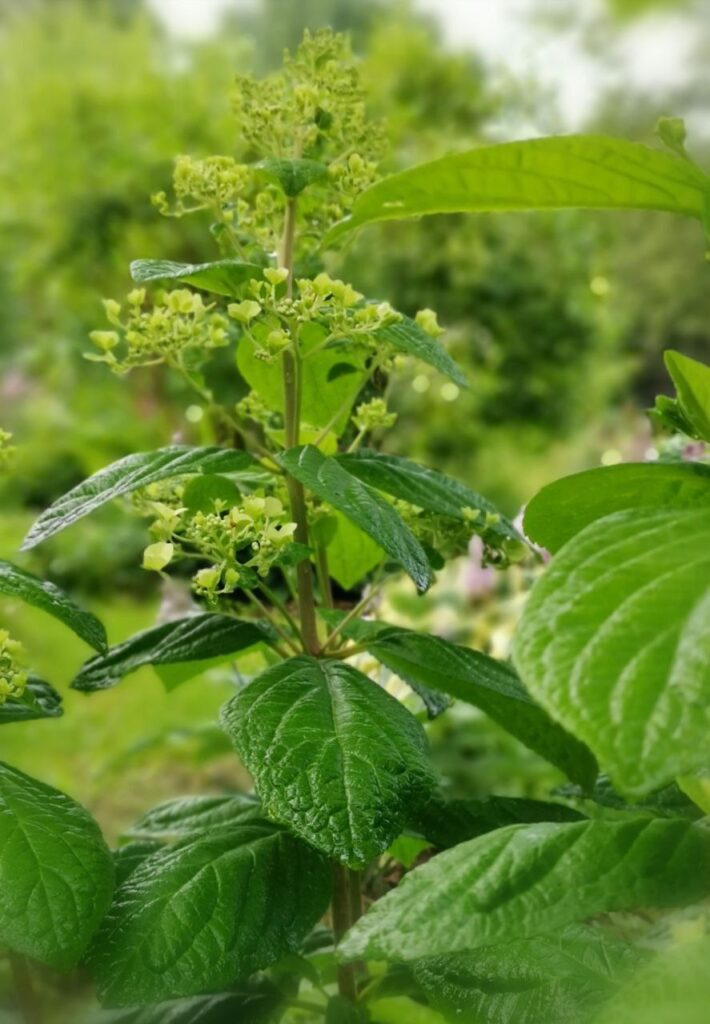 Соцветия 20 — 25 см, пирамидальные, рыхлые из стерильных и фертильных цветов.