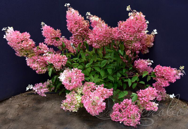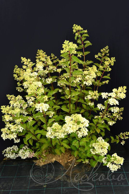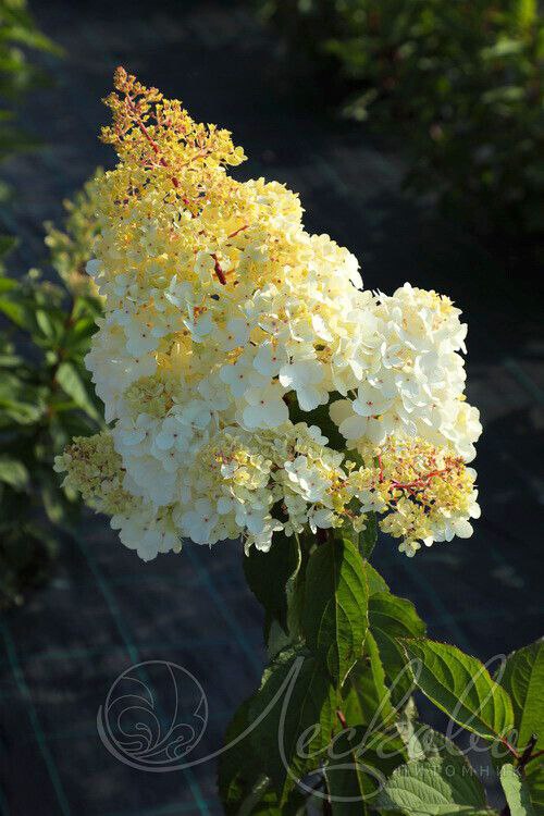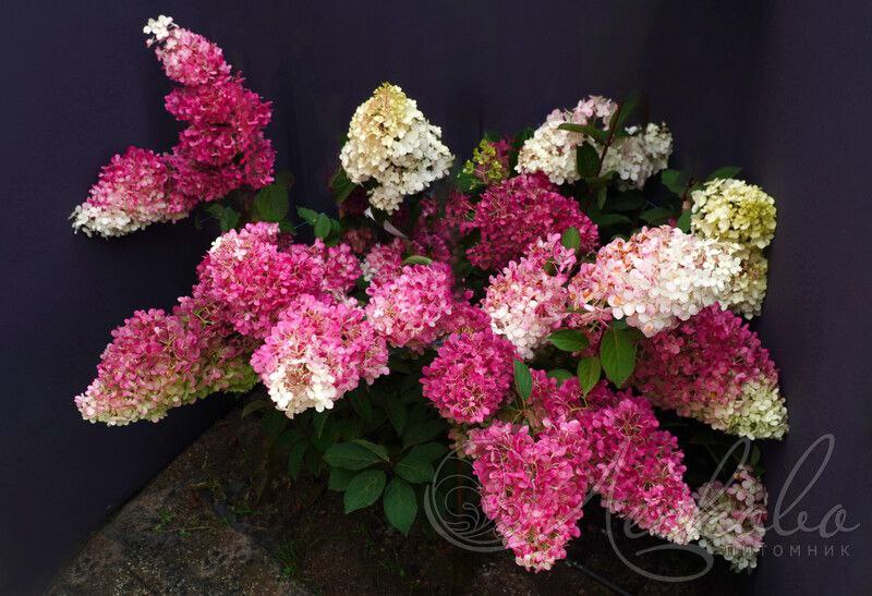 Соцветие немного рыхлое, крупное, пирамидальной формы, способное достигать в длину 30–40 и даже более сантиметров.  Для него характерны боковые выступы, которые могут превратиться в самостоятельные соцветия, в случае повышенных доз азота. Еще один характерный признак сорта – это небольшой и не симметричный кончик, в виде «хохолка».  Состоит из стерильных цветков, которые распускаются белыми, затем приобретают нежно-розовые оттенки, становясь насыщенно розовыми в конце цветения